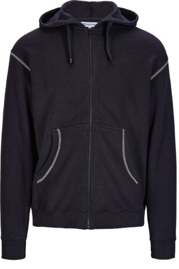 Klassisk hettejakke med kontrastsømmer, glidelås i front, to lommer, hette med snor, ribb i mansjetter og nedkant. Farge: Svart (10) Materiale: 80% Bomull, 20% Polyester, Børstet inside, 280g/m2 Årstid: Helårs