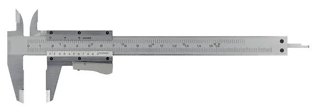 Av herdet verktøystål. Gradert i millimeter og eng. tommer. Nonieskala for 1/128'' og 1/20 mm. Utstyrt med dybdemål og spisser for innvendig måling. Hurtiglås. DIN 862.